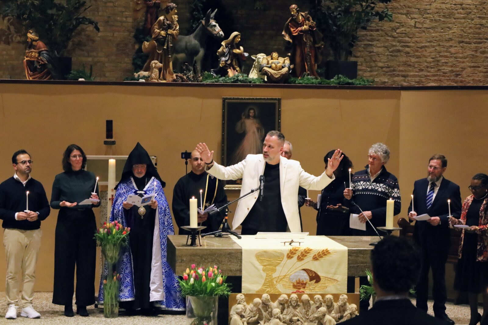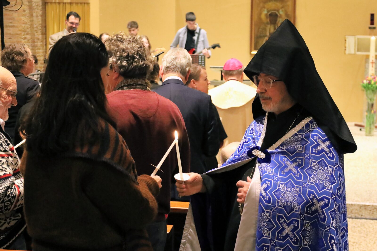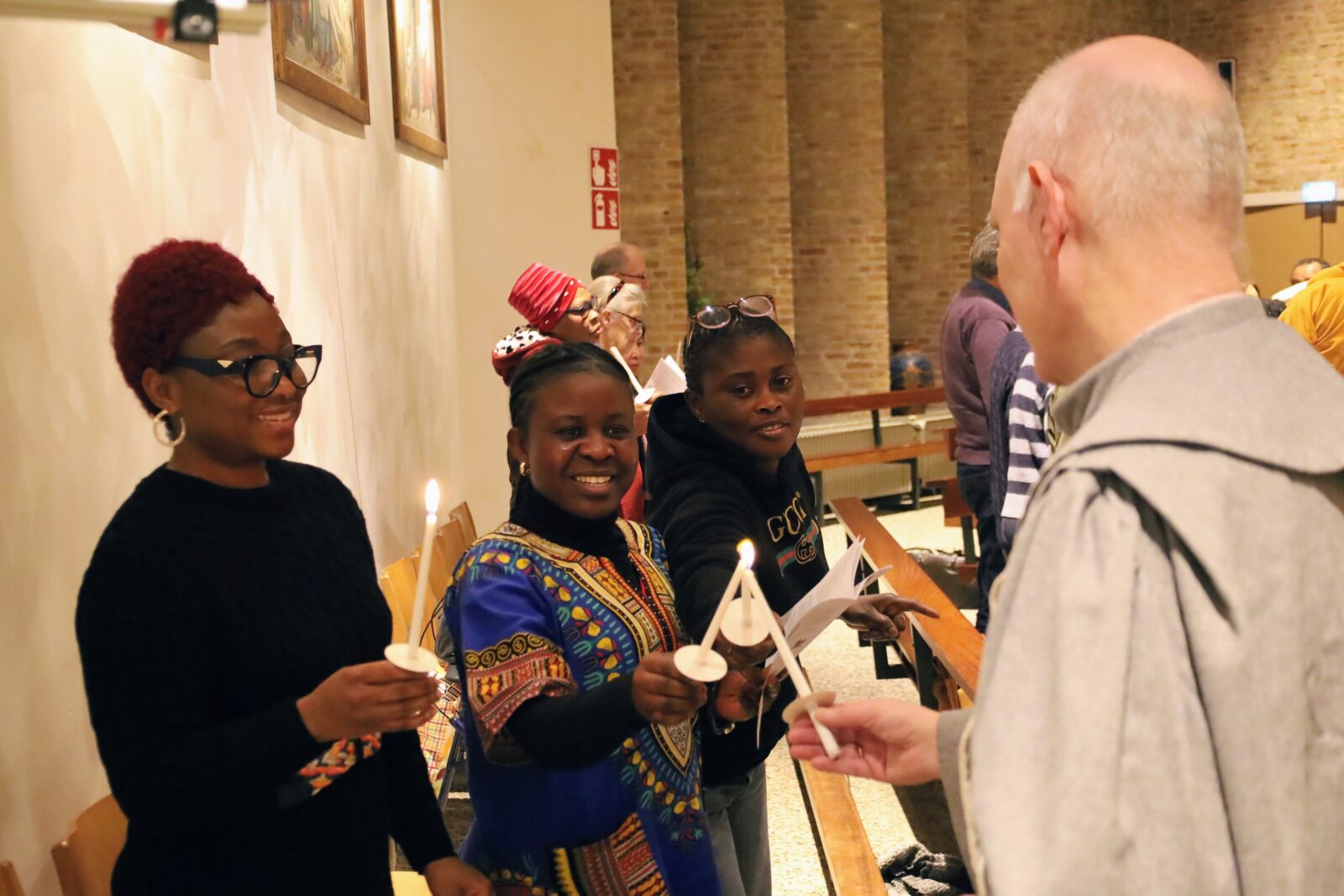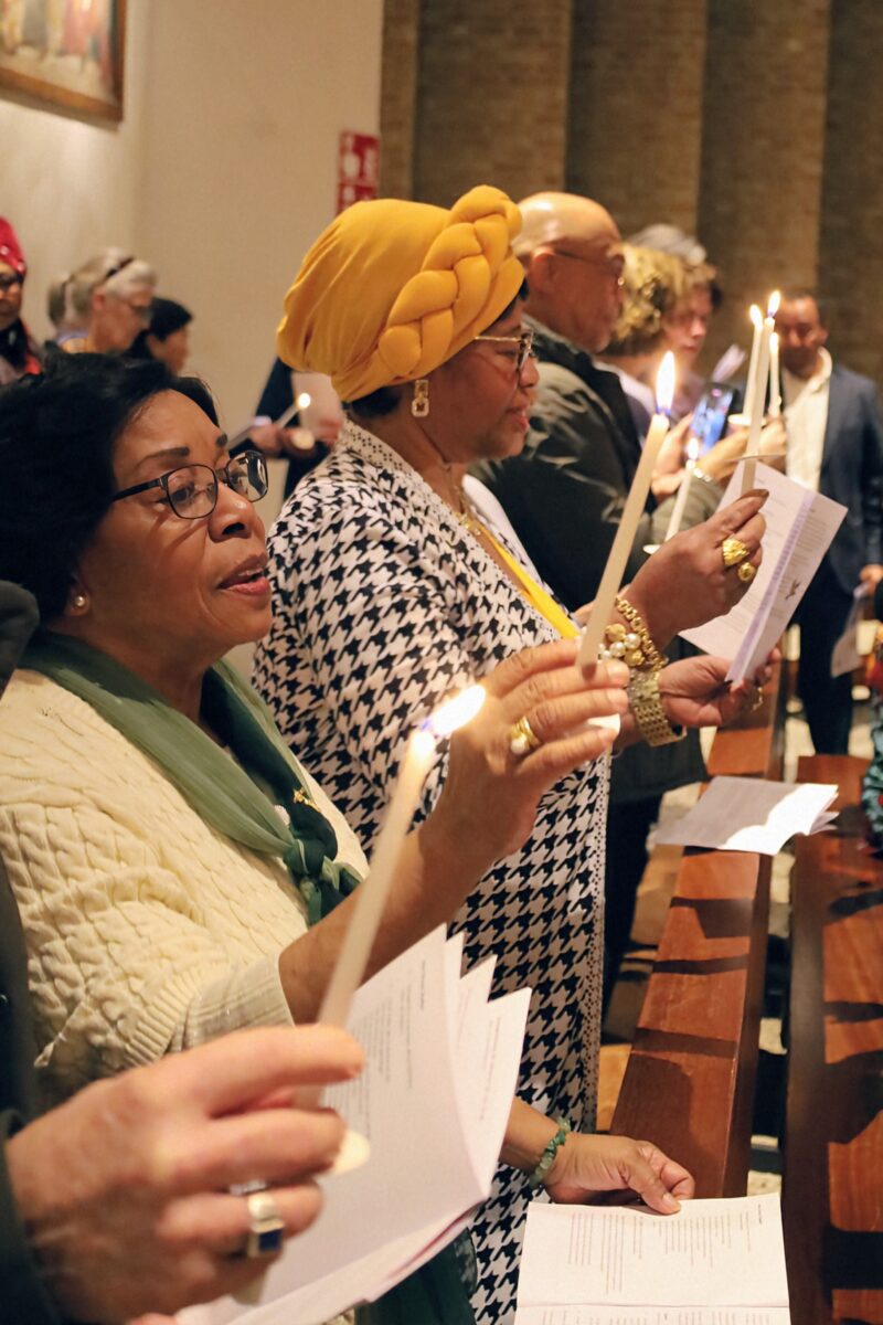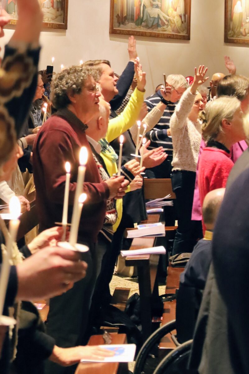 De vredesgroet en het delen van licht onder de kerkgangers zorgden voor een gevoel van verbondenheid.