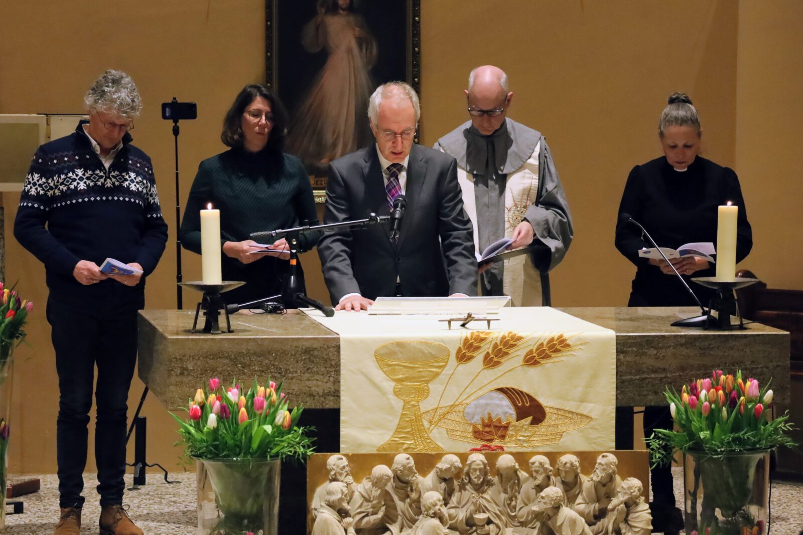 Voorgangers tijdens de viering waren mgr. Khajag Barsamian (Aartsbisschop Armeens Apostolische Kerk Rome), bisschop Rhoïnde Doth (bisschop Evangelische Broedergemeente), mgr. Hans van den Hende (bisschop Rooms-Katholieke Kerk), Eunice Anita-Offerman (coördinator Samen Kerk in Nederland), Arjen ten Brinke (voorganger Mozaiek), Ando Geworgjan (voorganger Armeens Evangelische Kerk Huis van God), Bianca Groen-Gallant (lid moderamen Protestantse Kerk in Nederland), Martin den Heijer (voorzitter Nationale Synode), Wilkin van de Kamp (stuurgroep Nederlands Christelijk Forum), Anita Kamperman (veldsecretaris Leger des Heils), prof. dr. Eric Peels (Christelijke Gereformeerde Kerken), Koos Smits (priester Rooms-Katholieke Sint Rafaëlkerk Utrecht), Martine Versteeg (directeur MissieNederland) en ds. Coen Wessel (algemeen secretaris Raad van Kerken).